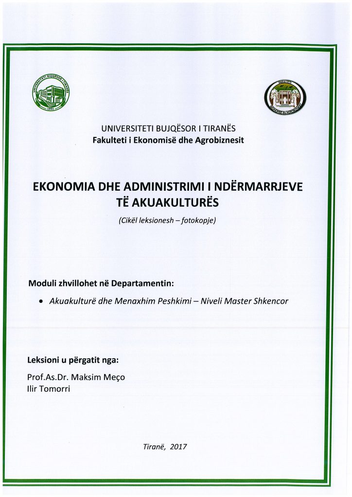 ekonomia dhe administrimi i ndermarrjeve te akuakultures prof.as.dr. maksim meco, ilir tomori