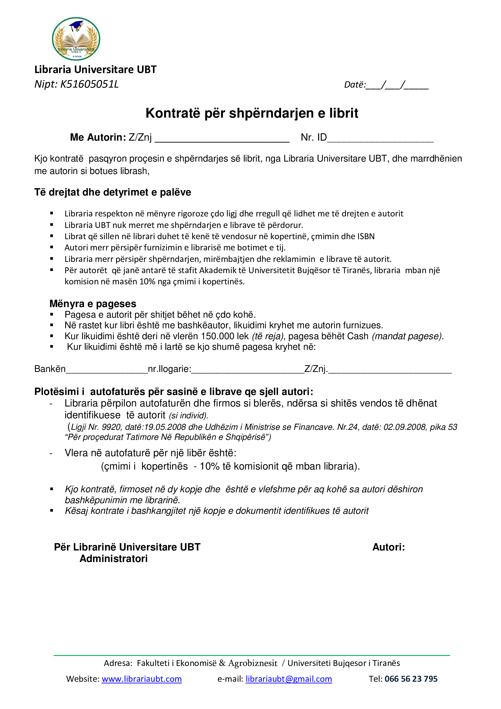 Libraria Universitare e UBT-së është një subjekt shërbimi i specializuar në shpërndarjen e librit, pranë Universitetit Bujqësor të Tiranës. E kryen këtë aktivitet që nga viti 1998.